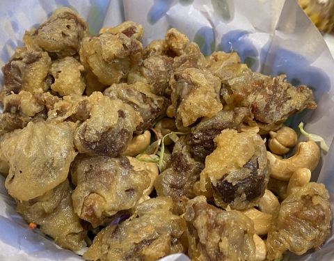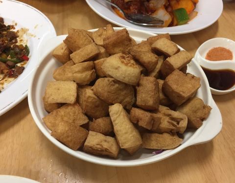听起来很霸气,豆腐有点像臭豆腐一样,豉油炒面好吃,就是油很多,鸡胗还可以炸着吃,外面还裹着蛋鸡...