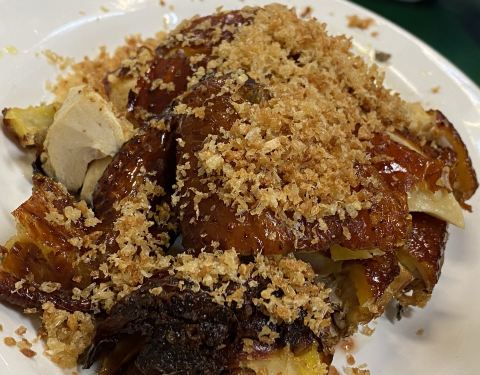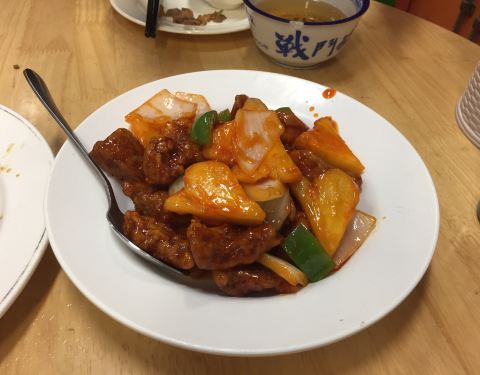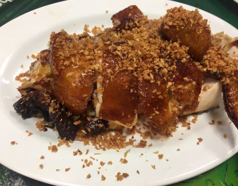 东宝小馆的名气非常大,只是在每天下午营业,稍微来晚一点都没座,所以最好是刚刚开始营业就去占座。虽然环境只是大排档,但是价格却不是大排档的价格,对于熟食中心来讲这个价位有点偏高,而且还要收5%的服务费,据说是全港最贵的大排档。招牌菜风沙鸡,将整只的鸡风干后,炸的香脆的蒜蓉酥铺在上面,皮劲脆,肉超嫩的。