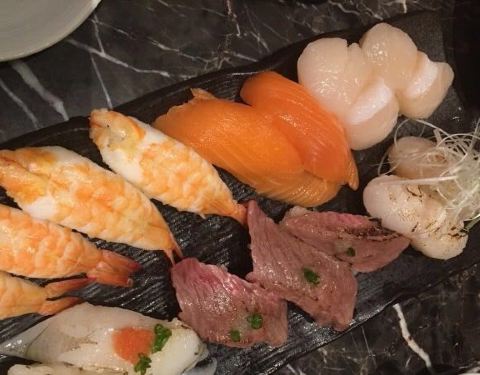 日本料理店里面还有铁板烧的,可以点现成的。厚切牛舌很好吃,还点了一些寿司,中规中矩吧。上面的海鲜还是非常新鲜的。人均也不是很贵。