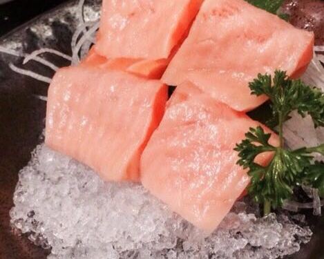 ...比较稳定,所以经常排队,三文鱼后切的鱼生本来就很给力了,要了份三文鱼鱼腩,怎么能肥成这个样子呢