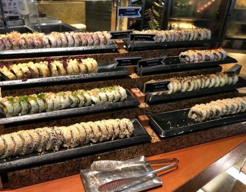 - 这里提供自助午餐、自助晚餐、下午茶,自助午餐包括波士顿龙虾、日本刺身、小笼包