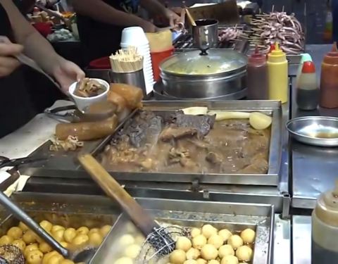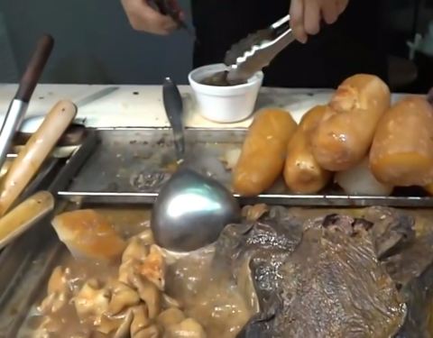 很难说能逛遍香港中环的大街小巷,除了密密麻麻的大楼、银行、餐馆和商铺,也可以寻觅到不少的小吃。 食客们被一阵浓郁的肉香所吸引,在半山扶梯边上的吉士笠街口聚集一起,这边“水记”主打产品就是鲜烧牛杂和鱼蛋。 店主不停地起料、剪切、拌酱、盛汤,大家围观啧啧,当一碗牛杂传递到手时,内心已比味蕾更早被征服了。