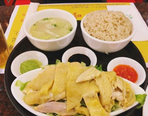 到了晚饭时间啦。 海南鸡饭,饭很好吃,极力推荐