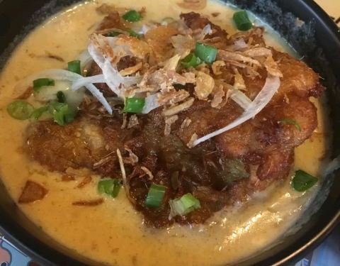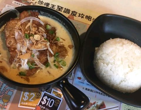 好时沙嗲香港尖沙咀好时中心里面的东南亚快餐,招牌菜嗲猪扒一整块炸好的猪扒浸在咖喱浓汤里面,猪扒吸收了汤汁汤底微辣很下饭。