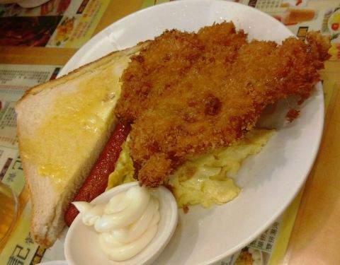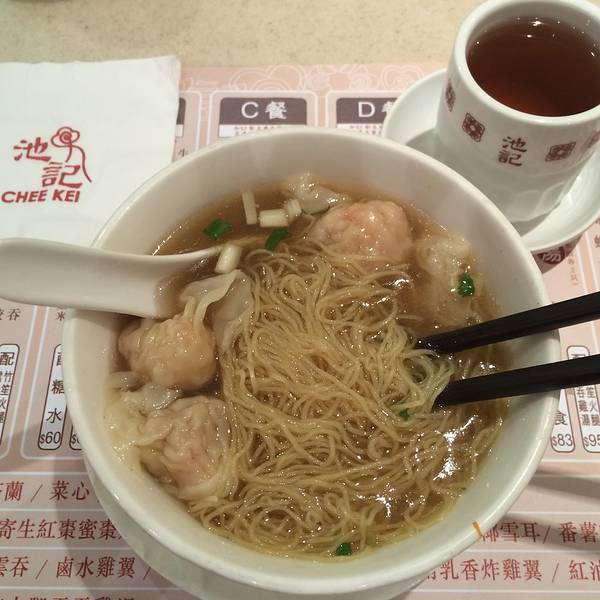 西多士加了香肠猪排鸡蛋,真的这里的早餐真的不太会点…点完上来和闺蜜直接傻掉…那么大一份,怎么吃得下,幸好就加了一份云吞面,面是碱水面,吃不太惯,云吞好吃的!奶茶滑滑的,香香的,还不错。