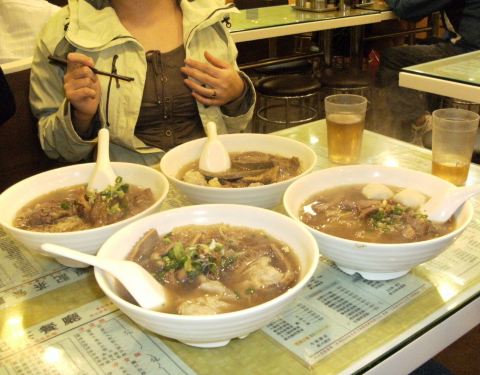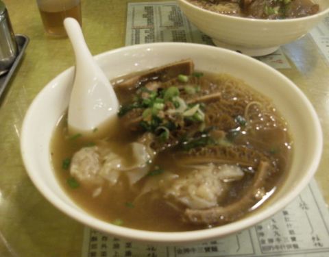 价格一碗在三四十港元左右,生意非常的好。招牌有牛肚云吞,牛腩面等