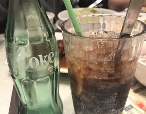 金钱肚牛腩、蜜汁叉烧、生菜、超级好吃,鱼蛋粉感觉倒是一般般,还有玻璃瓶装可乐,不知道是心里原因还是什么这种可乐加碎冰超级无敌绝配好喝。