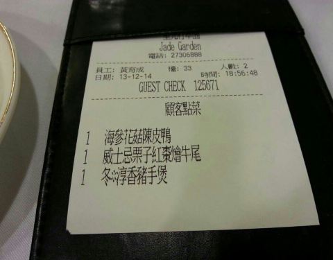 我们是一家人去吃的早茶,和广州的早茶差不多,可以单点,也可以从服务员推的车上选择,味道还是不错的,很多香港本地人去吃,服务员也多是大姐级别的。
