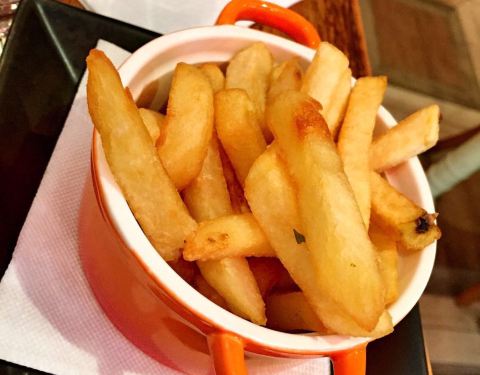 感觉他们家的菜品是偏美式多一点吧。牛排每份块头都很大啊就是像美国的牛排一样。配菜薯条也是很大一份色拉也是很大一份