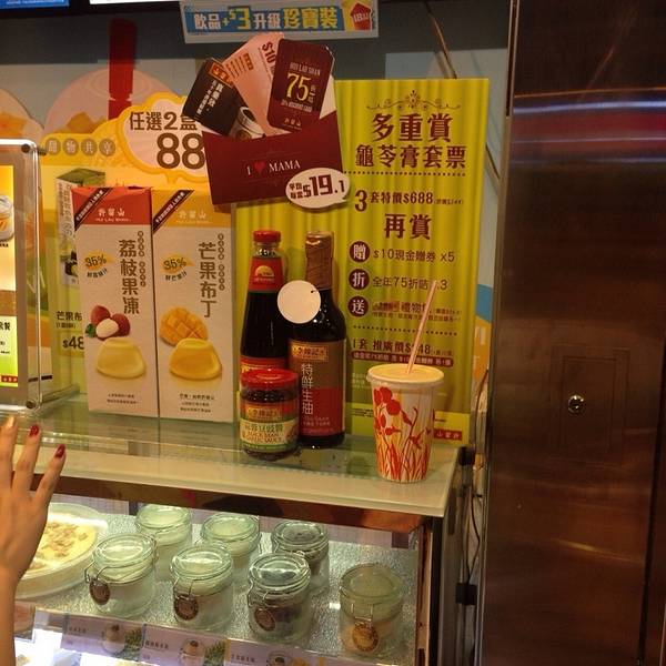 【简介】许留山是香港知名的甜品店,虽然内地北京也有分店,但是国内的新鲜度、分量和香港真是差距很大的,来这里体验下芒果班戟、萝卜糕、芒果饮品,那还是很不错的。海港城这地角靠近天星码头以及超旺的购物中心1881广场,逛街血拼的时候来一杯那也是很赞的。 【环境】店铺按香港的说法是非常细,面积很小只有几平米,只是一个外卖档口,适合拿了就走,没室内只有2张桌子。商品主打饮品,类似小丸子、杨枝金露这样需要一定制作时间且不太好边走边吃的食物并不是随时提供,还有瓶装的解暑饮料,买1瓶以上还额外折扣。 【体验】最推荐的还是芒果饮品,里面芒果分量很多,打的很细,喝起来不堵塞吸管,口感又很好,味道浓郁的很,西米露、小丸子水果捞也很赞;茅根水也是在这家不错的体验,因为夏天西瓜湿度高又很热,经常出汗厉害火气旺。瓶装的一瓶约12元,口感苦中微甜并不讨人嫌,不会像甜品那样粘嗓子,下火解渴功效明显,真心推荐哟。人均消费约40元左右,价格中等。