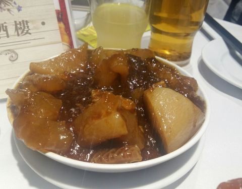 - 荣华月饼的店,食神韬韬主理,但它的烧鹅,并不是太好吃。返而小吃的猪手就做的不错。有乡下的味道
