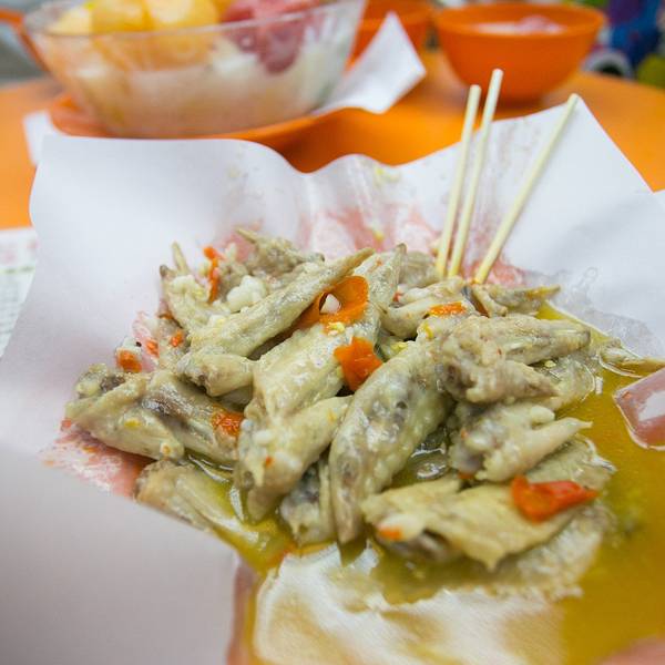 佳记甜品: B仔凉粉,是这次香港之行惊喜的发现。 当然也是小米和猪猪带去的,这家店生意特别好,晚上来基本都要排队,对于排队,我有着特殊的执着,总觉得排队的都是好吃的。 排队到我们的时候,还是需要拼桌,大厅内高朋满座,下班后的香港夜生活,不只有灯红酒绿,还可以是一份与朋友分享的甜蜜。 点了一份B仔凉粉,分量超大份,三个人吃都没吃完。 卤鸡翅尖蒜香的味道也非常不错,如果你恰好路过,建议来试一下。