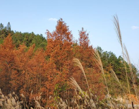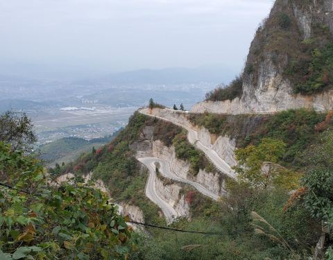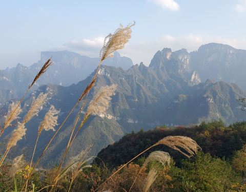 崇山以红叶著称,还有银杏及其他黄的白的树叶看,不过今年因为天气干燥并且还没打霜,我是11月23去的,叶子不够红,而银杏林的叶子大部分都掉了,有点遗憾。盘山路壮观,不累,可以沿途看风景,遥望天门山很有气势,不过旅途远,锦程驾照上去到云端小镇有至少12公里,快点走上去要3个小时左右,下来要2个小时,而且要注意快到云端小镇那一段有几家养了狗