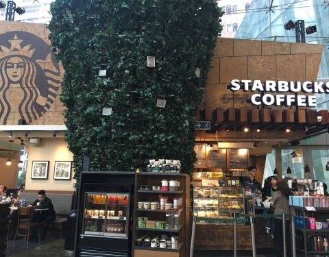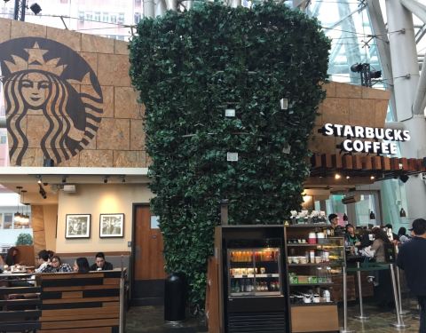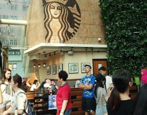- 朗豪坊的星巴克就在四楼的中庭位置,可以说位置和视野都是相当开阔的