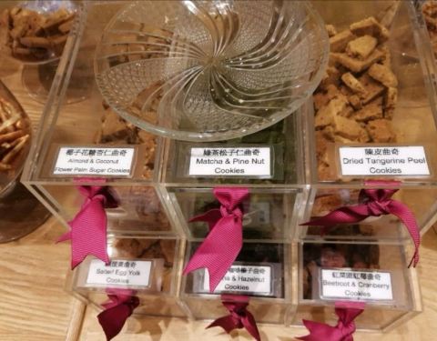 这家曲奇店很出名,就是开门时间比较迟,到了之后小小的店里一下子挤满了人,这家店最好的地方是提供试吃,而且都是大块的,可以根据自己喜好口感购买,喜欢海藻蝴蝶酥,很多口味的都卖完了,有点小失望。但是有点贵,60多港币100克的蝴蝶酥。