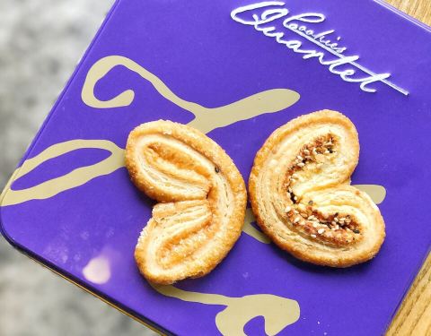 - 买了【曲奇四重奏】的蝴蝶酥,之前在学校就找人代购过,挺好吃的