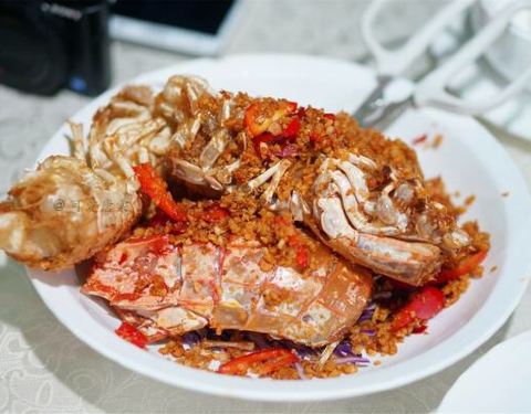 椒盐濑尿虾咸香扑鼻,南记的椒盐做的真的好,虾外表足够香脆入味了,内里的肉还能保持嫩而不干。比起清蒸,椒盐做法的肉会更紧致,也更有味道