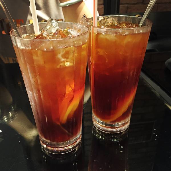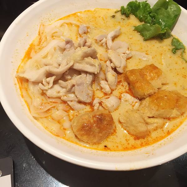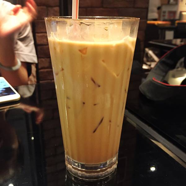 事先做好功课,从蜡像馆出来就在旁边这家店吃晚饭了。店面是开放式的,跟外部只有一条小阻隔。翻开菜单,东西真不便宜啊。可是山上的餐厅价格都贵,这家是贵里算便宜的。我点了柠檬茶和沙爹肥牛汤粉,朋友点了芒...