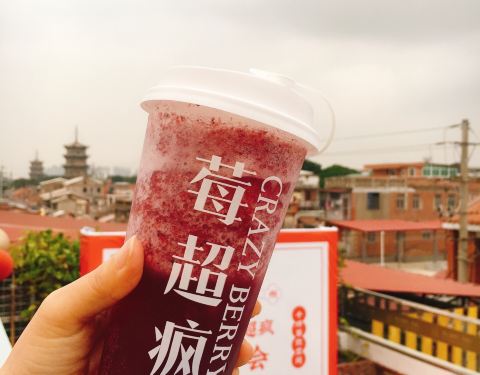 鲤好,这里是泉州,泉州文化历史尽在莓超疯西街店展现. 探索美食,追寻美味,追寻新店 莓超疯(西街天台2店) 地址: 泉州影剧院正对面. 环境: 西街1店与2店上天台后是相连通的,在天台上可以观赏到西街,钟楼,开元寺等相关美景,每一层都置放有儿时记忆用品,旧时电视柜,风扇,收音机,冰箱,缝纫机,复古电话,令您怀念儿时每好记忆. 菜品 草莓波波::一层果肉,一层奶香,一层果香,层层环绕,营造不一样果饮感.,新鲜草莓现炸浓缩精华,杏仁片脆感,,说不出的清甜清爽,果肉珍珠等韧性Q弹弹牙,清香奶香醇厚,草莓酸爽可口,夏天来上一杯,绝对超级无敌棒舌尖之感
