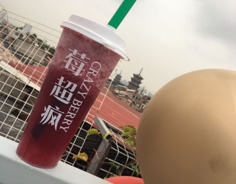 莓超疯西街新开了个天台2店,前去探探究竟。 莓超疯天台2店其实和1店,鲜疯是互相打通的,营业面积有1000多平方。店铺以闽南风格为主,有着许多小时候的回忆小物件。之所以叫天台店,当然是有着宽敞的天台啦。在天台上,可以远眺东西双塔,钟楼和西街,风景优美。 尝了下新品芋圆豆乳奶茶,先打开封口,一呡,满满豆粉香味。下面是咸芝士奶盖,底部是软糯的芋圆。整杯味道挺好的,建议点少糖。 可以过来品尝美味的奶茶,欣赏美丽的西街风景。