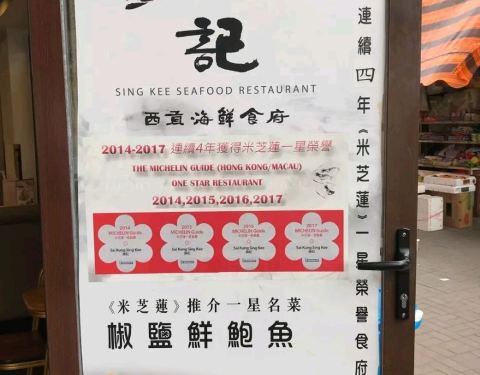 胜记海鲜酒家,位置在西贡小渔村的一个米其林一星海鲜酒家,海鲜自己挑 挑完之后会收加工费给你做,象拔蚌 是鲜甜鲜甜的 超级脆;我都开始怀疑之前吃过的象拔蚌都是些什么鬼了;美极中虾 图二那个 我也不知道是啥做法 浓度刚好的酱油味不会抢了虾的鲜味;清蒸东星斑 鱼上来的时候还有点没脱骨 然后服务员说东星斑就要这样吃 脱骨的鱼肉很嫩 没脱骨鱼肉的靠热汤汁浇上去脱骨;脆皮滑豆腐 必点推荐 太考验厨师的功底了;椒盐虾菇 和手臂一样粗的虾菇真的是每次来香港必吃了 因为大 肉就超饱满 就是有点点偏咸,一些清蒸菜就是吃它的原汁原味 蘸他们的秘制酱肉 咸咸辣辣的也不错!送的甜点 不甜 像果冻的口感!吃海鲜配酒必不可少 觉得人生也太幸福了吧!好多菜都没照,电量不足,这家店什么都好 就是贵了点(人均一千左右)远了点,其他没毛病!