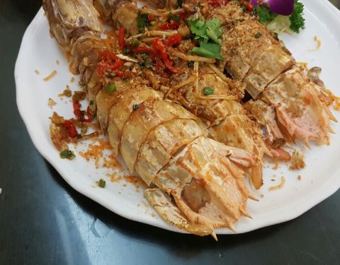 不在西贡餐店林立的海鲜街上,而在后面的市场街中,不好找,很低调。一楼也仅仅只有三四张桌子,没想到旁边的楼梯上去还有好几个大厅很多餐位。现在没有了套餐,单点都很贵很贵,不少海鲜除了材料费,还收加工费,并且按用餐人数分级算,若人多会划算些。出品很有水准,明显的大厨风范,两片蛏子皇饱满爽嫩,花甲新鲜清甜,酥炸生蚝抢了一点味道,建议最好还是自己买材料过来加工便宜一些。