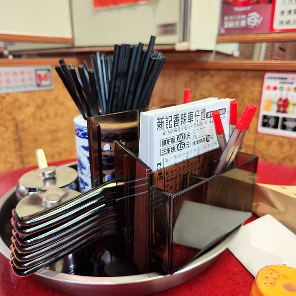正好就在铜锣湾这边闲逛,也没特别的查攻略,就搜了搜周围好吃的饭店,看到这家车仔面的店,来体验一下,感觉整体还是不错的。 [薄荷]环境: 是十分小的店铺,吃完了就得赶紧走,一刻都不能多待,没什么环境可言,很拥挤的。 [服务铃]服务: 进去就是拿桌子上的小点菜单点餐就行,自己选择要什么面,加什么料,很容易的,吃完门口现金付款就可以了。