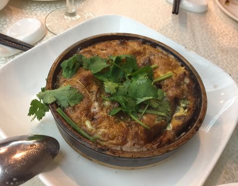 进门服务员都是中年以上,除了掌柜的,都是男生。服务态度很好,对餐牌上的菜品非常熟悉。今天点的菜不少。招牌盐焗鸡,豬干枸杞,煎藕饼,酿辣椒,凉瓜炒蚬等等,都很不错。见到菜单上有砵仔鱼肠,可惜今天没货,没口福。小吃的皮蛋非常糖心,饭后送的白糖糕也是驚喜。