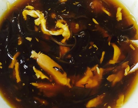 糯米饭做得不错,新鲜热辣,香软的糯米饭淋上特调酱油,再洒上香脆的虾米、花生和葱花,确实美味无穷...