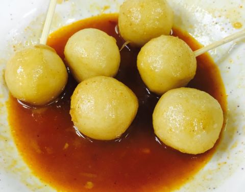 。糯米饭做得不错,新鲜热辣,香软的糯米饭淋上特调酱油,再洒上香脆的虾米、花生和葱花,确实美味无穷,百吃不厌。再来一份咖喱鱼蛋,咖喱香辣开胃,鱼蛋味道好又弹牙,真材实料!