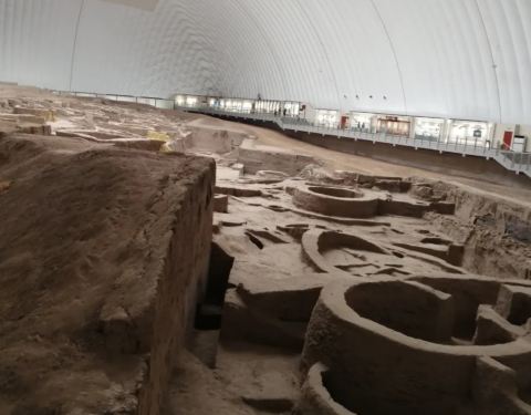 位于内蒙古自治区赤峰市红山区,距离赤峰市区约十公里左右,有高速公路通达,交通比较便利。博物馆实行免票,经常有旅行社带团前往。博物馆的馆舍建筑比较新颖,是一种不多见的膜结构建筑,巨大的浅天蓝色像水立方的气膜屋顶远远看去非常现代,与周围的黄土地带形成鲜明反差。为保护遗址,馆内温度保持自然状态,不能用空调和暖气,因此,冬夏气温比较极端,夏天最热达到40度,冬天最低到-40度。故适宜参观的时节是春秋季。
