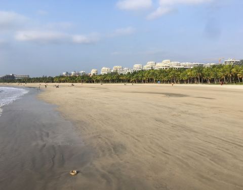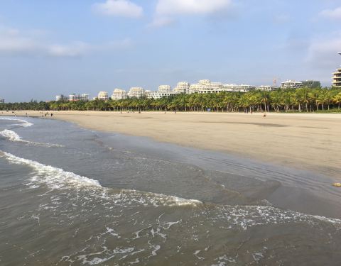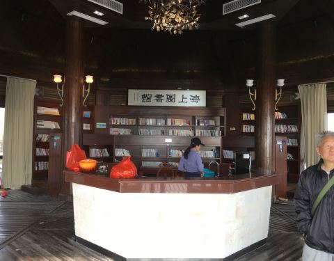 海南省文昌高隆湾的逸龙湾楼盘。在海滩上修建了栈桥,长二百米,并在尽头修建了海上图书馆。 馆内可阅读、休闲。 栈桥上拍摄很不错。有人钓鱼。 大海、海滩,椰林!