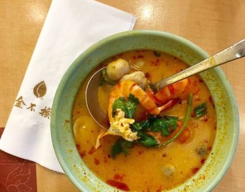 金不换泰国餐厅,美食推荐!香芋黑糯米,特别惊喜,黑糯米特别多,香芋也特别大一颗一颗的,黑糯米甜度适中,配的是椰汁,一点都不甜,和黑糯米中和的很好,暖暖的,好好吃;冬阴功汤,简直太辣了,我朋友觉得可...