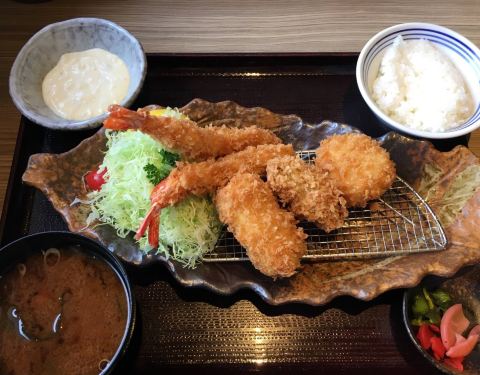 吉列大虾伴带子定食