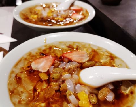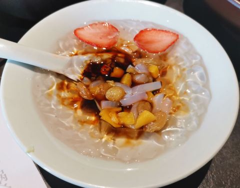 第一次去四川乐山在山底一民宿旁吃到跷脚牛肉,至今念念不忘那鲜美的药膳汤,很惊喜在厦门发现了这家——尽膳口福跷脚牛肉位于JFC品尚中心4楼,店内宽敞有品味,轻工业风搭配昏昏浪漫的暖系灯光,很适合情侣,好基友聚会哈,当然家庭聚会也是很棒的啦!汤底可以鸳鸯,药膳汤加入一小块骨头熬制的胶原,养颜美容更养身,牛肉都很推荐重点就是新鲜,非常新鲜!还有冰粉很清爽很喜欢哟!