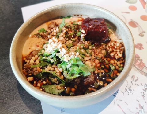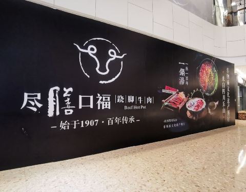 尽膳口福是一家主营跷脚牛肉的店,位于JFC的A馆。店里的装修宽敞而大气。鲜切牛上脑肉质鲜嫩多汁,脂肪杂交均匀,还有大理石的花纹。九秒牛肉切的极薄,夹起来还能微微透过光亮,呈现出好看的红粉色,看起来特别诱人。店里的冰粉和红糖糍粑等小吃,是吃跷脚牛肉的标配,基本上每一桌都会点这么几样。火锅开锅的时候,还有跷脚牛肉的传人来为大家讲解关于跷脚牛肉的历史,体验很棒。