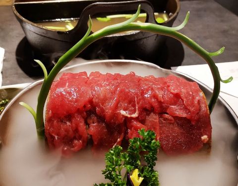汤底可以鸳鸯,药膳汤加入一小块骨头熬制的胶原,养颜美容更养身,牛肉都很推荐重点就是新鲜,非常新鲜