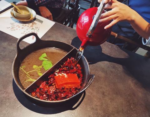 火锅来一波,这个季节火锅是标配,服务员很热情的招待我们入座,草本鸳鸯锅、九秒牛肉、极品牛舌一份、秘制炒饭、峨眉山二宝等上菜速度非常快,酱料自助调制,锅底滚开,服务员会夹一块胶原蛋白块粒至碗中,用汤...