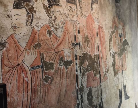 陕西礼泉昭陵博物馆昭陵唐墓壁画展厅:昭陵是唐陵中最大的陵墓,周围有188座陪葬墓。自上世纪70年代以来,先后发掘了39座陪葬墓,其中有壁画404幅,揭取并展出99幅。昭陵壁画时间跨度长,数量大,品位高,构图巧妙,内容丰富,是博物馆展出的重要内容之一。