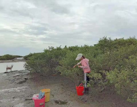 孩子超喜欢看栖息在红树林底下招潮蟹,笫二次又团观复赶海。他说自家民宿正装修,各楼层有厨房