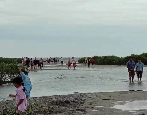 一大早就来赶海,首先领了赶海工具走过对公路就看到大海。然后通过一片红树林就看到满地螃蟹️,又可以挖沙虫和耙螺了,但是这个季节赶海的东西是太多,只是让孩子体验一下渔家风情而已