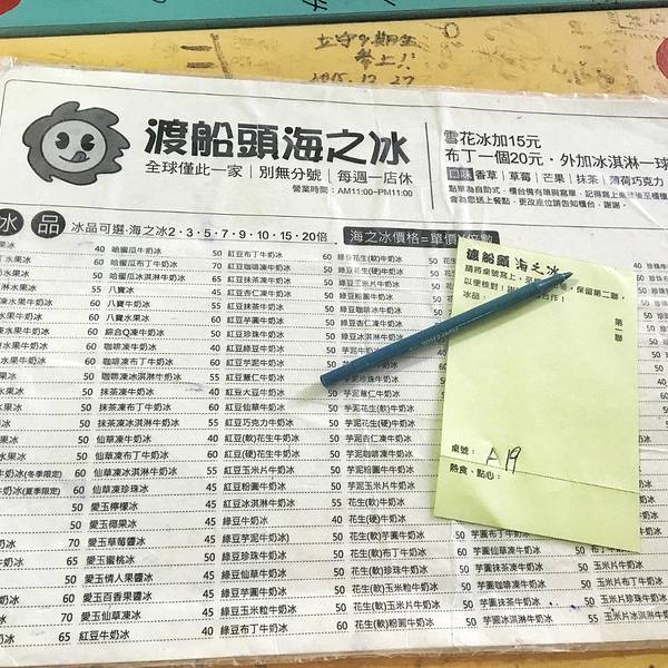 轮渡码头旁的”海之冰“就这么突然出现在我们面前。这个是在我的计划里的项目。热天气估计也增加了客流,人山人海形容毫不为过。根据我的经验,看到了就要去,不要怕人多,因为后面人会更多,于是我们义无反顾地冲了进去。 ”海之冰“里循环播放的视频中有一句广告语,大约的意思是”每一个高雄的孩子都吃过“。我觉得这句很牛。其实,现在应该已经演变成”每一个去过高雄的人都吃过“吧!