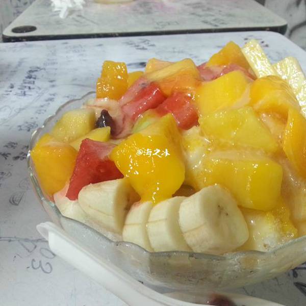 全台十大人气冰店之一,海之冰有超过100种冰品、豆花、甜汤、果汁,招牌大碗冰盛满丰富的当季水果,淋上酸甜的酱汁人多的话,还可以做成超大份,有2倍冰,3倍,5倍6倍直到20倍冰,最大的像洗面盆一样大,非常夸张...全台十大人气冰店之一,海之冰有超过100种冰品、豆花、甜汤、果汁,招牌大碗冰盛满丰富的当季水果,淋上酸甜的酱汁人多的话,还可以做成超大份,有2倍冰,3倍,5倍6倍直到20倍冰,最大的像洗面盆一样大,非常夸张。我们两个人点了一份小的,已经是吃不完啦。不过真的是又香又棉,透心凉。