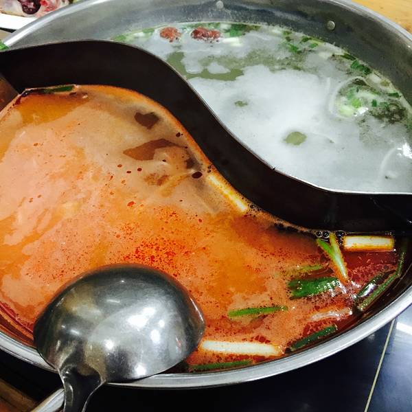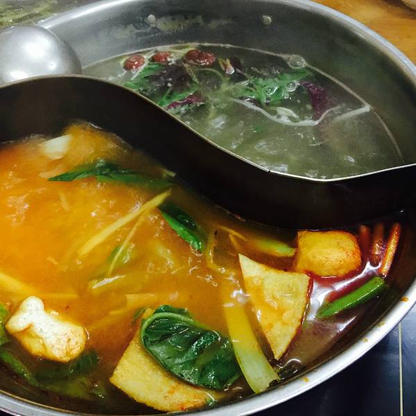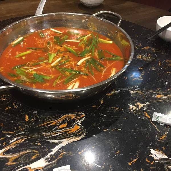 我们要了鸳鸯锅,蘸酱加了酸汤不错。这酸汤也是相当不错的,相当开胃,又酸又辣,越煮越酸哈哈我是很喜欢的,喝了两三碗。那里青菜是算5块钱一个人,肉的话大盘20小盘10.吃来吃去94块钱的食物我们就饱了,最后还直接讲价讲到90,这样人均30超实惠的!推荐各位。