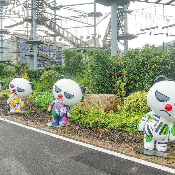 离开庾村,驱车继续我们的旅途,那便是 德清 的最后一站上渚山奇幻谷。奇幻谷的地理位置很好,东临G25长深高速,如果从 杭州 自驾过来,半个小时就可以到达。整个景区的风光也是很美的,山水交融、田园错落,还有很多奇花异草和游玩设施映衬其间,堪称是一个集观光、休闲、养生、体验、度假于一体的国际化园区。让我印象最深刻的莫过于生态茶园,这里种植了很多 德清 当地的名茶——莫干黄芽。这是一种形似雀舌,色泽嫩黄,清香迥异的茶叶。当爬到茶园的高处,从上俯视,整个茶园的景色几乎可以尽收眼底,错落有致的布局,简直仿若人间仙境。生态茶园的一侧是OutdoorMix户外探险基地,OutdoorMix这个品牌源自 欧洲 的 阿尔卑斯山 脉,由熊猫塔、熊猫丛林穿越、熊猫攀岩墙、平衡感知公园、生态探索步道、智跑迷宫、生态营地等项目组成。 据说是由欧专业团队倾心打造,从设计、建设到运营严格遵循欧盟标准。有兴趣爱好户外的朋友到这里体验一番,想必也是一种很极致的享受。欣赏过奇幻谷的湖光山色和自然风光,还可以到景区的熊猫园看一看大熊猫。另外,有兴趣的朋友,不妨再到景区的玫瑰餐厅去参加一场别开生面的夜游园活动。烤的香喷喷的烤全羊、火辣辣的小龙虾,再配上冰镇过的啤酒,和阔别已久的亲朋好友齐聚一堂,一边聊聊天,一边欣赏主唱悠扬的歌声和旋律,这将是多么难忘的回忆。黑夜就像是漆黑的帷幕,渐渐地落下,唯有夜空点缀着闪闪繁星,与奇幻谷景区内的灯火阑珊,在黑夜中交相辉映,越发唯美。夏至已至, 德清 风光正绝美,快来品味吧。