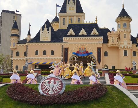地方不是超级大, 但也够一天走的 但是里面的项目, 排队等着也够一天玩的 ,最长链道的轨道还没...地方不是超级大, 但也够一天走的 但是里面的项目, 排队等着也够一天玩的 ,最长链道的轨道还没完成,跳楼机也在整修 不过小镇一进去就是公主城堡的样子