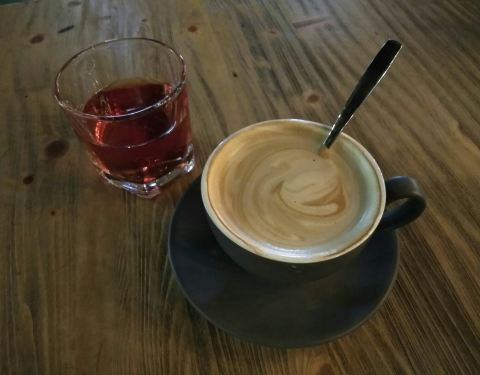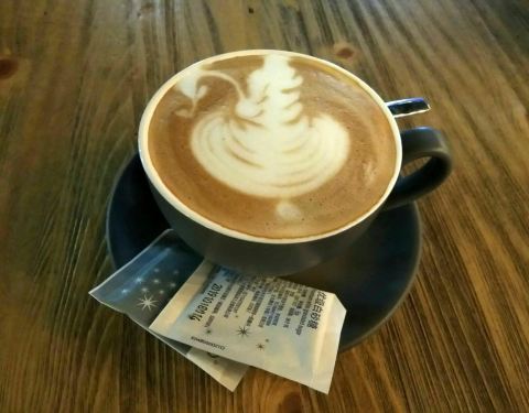 轻喋一口咖啡、听着休闲音乐,惬意情调蔓延……。首次光临时拉花机坏了,这次终于看到漂亮的心形奶沫了