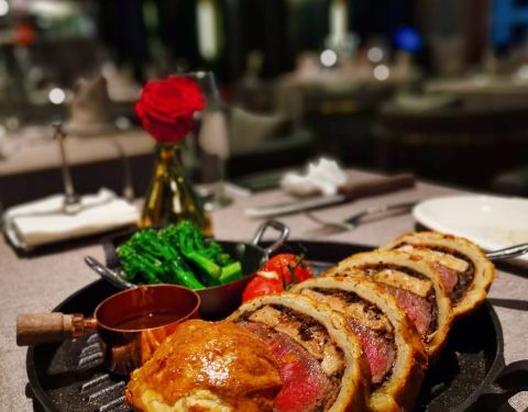 ✨这里具备了度过美好浪漫🌹之夜的一切条件,迷离的星空,浪漫的🌹,还有独具词桌的风光,每一位客人进来都备受瞩目,有一种被宠爱的感觉。 服务员💁♂️会贴心地带你就坐,特殊时期准备好洗手液,亲自按上,比男友还贴心。此刻开始就更期待我的大餐了[色] 🍷葡萄美酒夜光杯,吃牛排大餐必配红葡萄酒,斟上一杯看着漂亮的挂壁,亲呡一口,单宁的醇厚让人迷醉。 「餐前面包」上桌热热的就非常好吃,餐厅🍴现做的,最爱黑麦葡萄干果仁面包🥯口感韧滑,小麦的香气久久都在口中萦绕散不去。虽然知道后面有大菜还是忍不住吃了一整块,搭配黄油更加美妙。 「玉兰菜香梨鲑鱼色拉」特别喜欢玉兰菜的清苦,于香梨搭配更为清爽,同时调味百香果酱汁,还有我最爱的芝麻叶,此刻感觉鲑鱼竟然成了配菜,很健康开胃的一道前菜。 「香煎法国露吉鹅肝」优质鹅肝品种,黄油煎烤,奶香味融合鹅肝,达到了异常美妙的境界,一口下去汁水四溅,肥美感溢于言表。 「黑松露蘑菇汤」集齐了松露的一切鲜美,黑松露与蘑菇的完美结合,点缀了黑松露油,绵延醇厚,烟熏香萦绕于唇齿间,吃出了蘑菇的颗粒感。 「惠灵顿牛排」大菜上场,分食的盘子也有100多度,要小心。M5级别和牛惠灵顿,低温慢烤,酥皮奶香味十足,包裹着松露和鹅肝,嫩滑鲜爽的口感,融汇于此,高级感也一并办法,一口牛排🥩一酌美酒🍷在这美妙的夜晚,时间在此刻静止💗 「巧克力布朗尼」甜蜜的夜晚再来巧克力布朗尼蛋糕锦上添花。 这一刻的美好和聚焦都属于桌上的你[爱心]