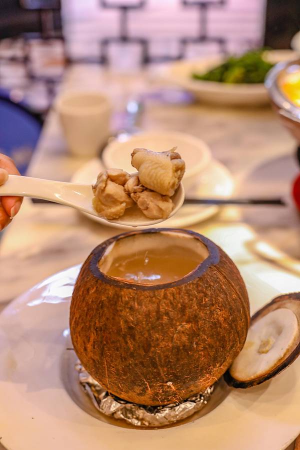 来免税店还有一个目的就是来尝一尝三亚当地有名的中华老字号沿江海南鸡饭店了,这里的文昌鸡烹饪技艺是海南省的非物质文化遗产,同时还汇集了海南岛的特色美食,主打的文昌鸡,东山羊,糟粕海鲜锅,鸡油饭都是必点的菜品,因胃口有限,我们点了店里主打的白斩文昌鸡和糟粕海鲜锅以及一碗鸡油饭,味道非常好吃,尤其是糟粕海鲜火锅,用料实在,而且味道特别醇厚,让人一吃就特别上瘾,来这里的小伙伴一定要尝试啊,文昌鸡因为是一年半以上的散养文昌鸡,所以肉质特别紧实,牙口不太好的话,就别点了,省的你吃不了浪费,价格还不便宜。