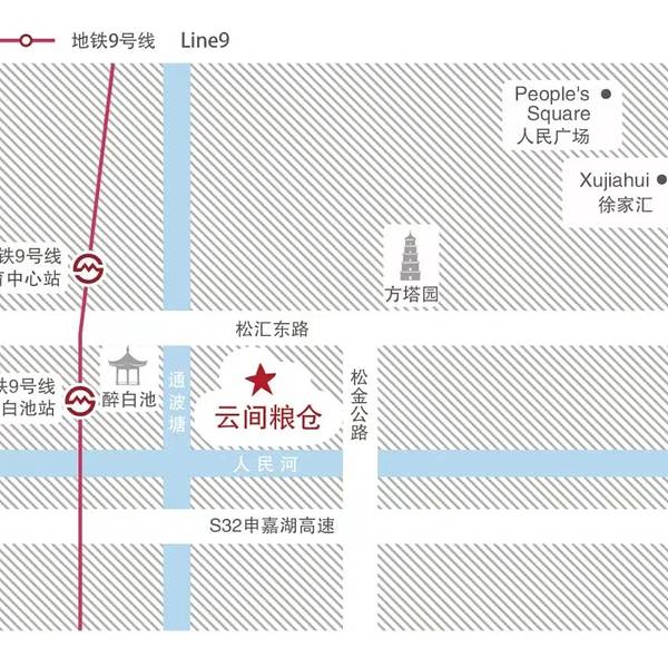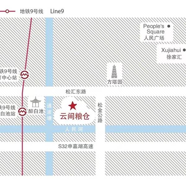 云间粮仓,位于上海市松江区,距上海市中心约45公里。 云间粮仓的前身,是上世纪50年代的一座粮仓,留存着一段特殊的历史文化记忆,经过改造,吸引了文青们慕名而来,城市的风景往往是会拍的人先发现的,通过美图加持,如今成了网红打卡新去处。 这个地方挺大的,咋玩呢?3条线路带你玩转云间粮仓,就是这么任性! 第1条历史寻踪参观路线:东门→太空涂鸦→地磅→涂鸦打破次元壁→ 啤酒文化博物馆→人民河景观带→历史中轴线文化广场→筒仓→涂鸦→德普家用电梯→古仓→雨巷涂鸦→余天成中医药文化展示馆→院士楼→十鹿九回头涂鸦→喇叭广场装置→东门。 第2条通波揽胜参观路线:东门→太空涂鸦→地磅→涂鸦打破次元壁→古仓→德普家用电梯→人民河景观带→涂鸦smoke→何曦工作室→华阳食府→普照寺碑记→通波塘→松江油脂化工厂旧址→攀岩馆→王汝刚工作室→云间半亩田→东门。 第3条动静云间参观路线:东门→云间艺术馆→广场装置→演艺中心→洛克篮球馆→雨坤体育公园→宽居云涧→曹刚工作室→攀岩馆→余天成中医药文化展示馆→雨巷涂鸦→十鹿九回头涂鸦→王汝刚工作室→云间半亩田→地磅→太空涂鸦→东门。 这里一共有两个大门:东门和北门,自驾车和单车都可以进去的哈,里面停车的地方多的去,2小时内是免费的哦!超过半小时到1小时内收费5元,超过1小时每半小时收费2.5元,超过8小时24小时以内收费40元。整个园区是24小时开放的,可以通宵玩的哈。 云间粮仓业态挺丰富的,在这里可以N种玩:可以看看艺术展览展或看一场演出、可以打一场球赛或竞技运动、可以品尝多元化的美食、可以摆Pose拍拍大片,逛累了,还可以开个民宿或酒店休憩休憩……